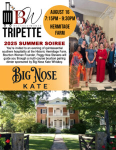TRIPETTE – a curated, intimate and exclusive weekend featuring guided tours of distilleries and other bourbon-related landmarks, exclusive dining experiences, whiskey pairings, cocktails, regional speakers, and more. All hosted by Bourbon Women Founder, Peggy Noe Stevens.